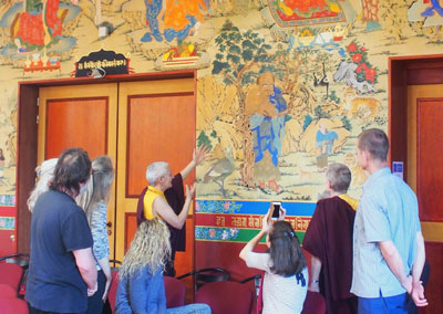 Oeuvre unique et exceptionnelle de près de 40 mètres de long sur 2,60 mètres de haut, les fresques du grand temple de Dhagpo Kundreul Ling dépeignent la vie du Bouddha Shakyamuni.