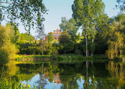 L’ensemble paysager de Dhagpo Kundreul Ling est composé de parcs et de jardins s’étendant sur plusieurs hectares autour du temple.